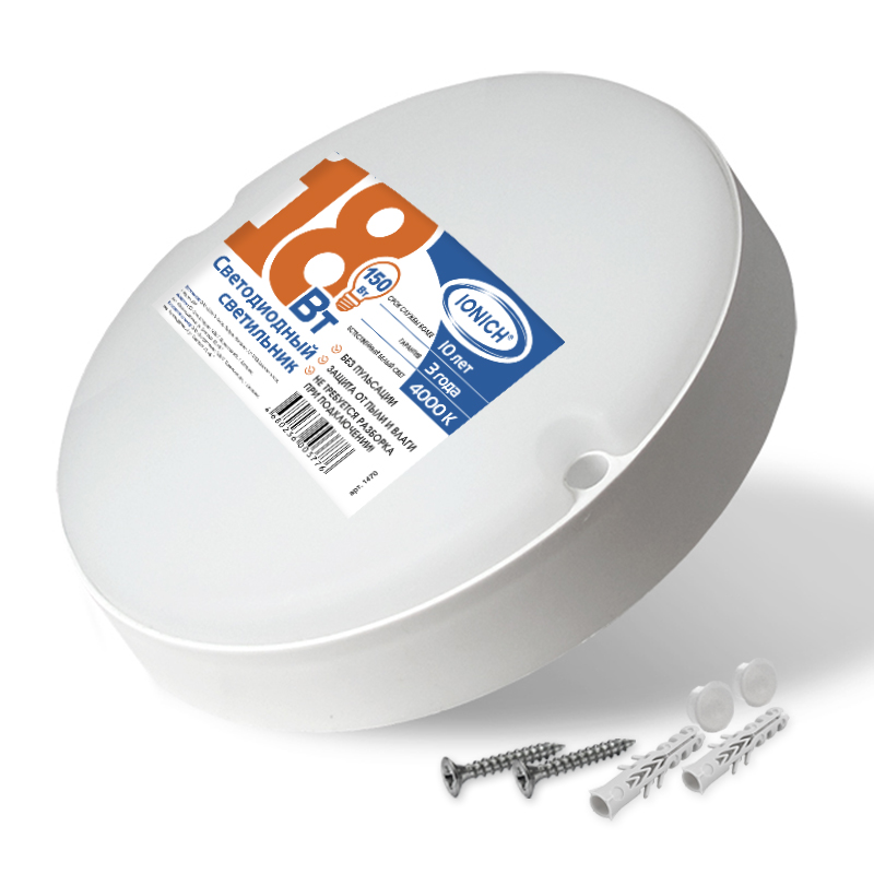 Светодиодные светильники ЖКХ IONICH предназначены для внешнего и для внутреннего освещения бытовых помещений, общественных и производственных помещений в температурном диапазоне от -40°С до +50°С. Светильники имеют высокую степень защиты IP65.