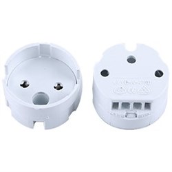Патрон надевается на контакты лампы. Есть отверстие для крепления патрона в светильнике. Все патроны G13 подсоединение проводов безвинтовое.