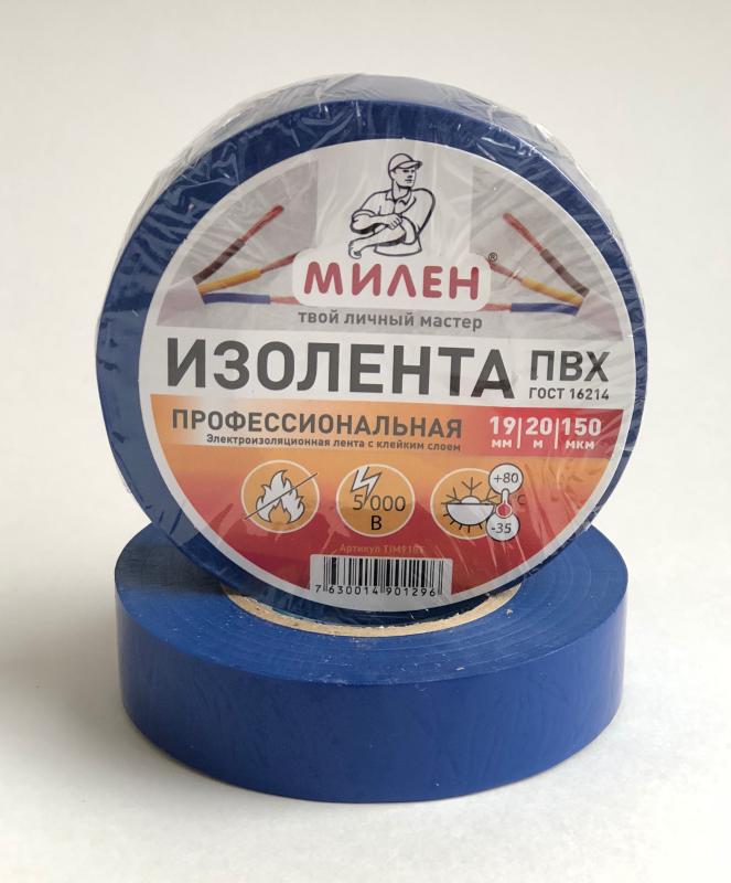 Изолента ПВХ 19*20 синяя МИЛЕН (6/60)