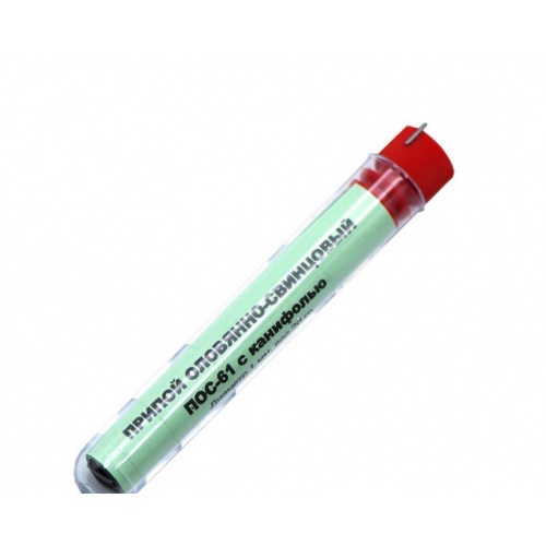 Припой для паяльника ПОС 61 с канифолью в колбе карандаше 1 мм 10 гр Смоленск (1/10)