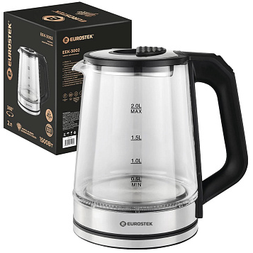Чайник электрический 1,5Квт 2,0л стекло с подсветкой EEK-3002 Eurostek (1/12)
